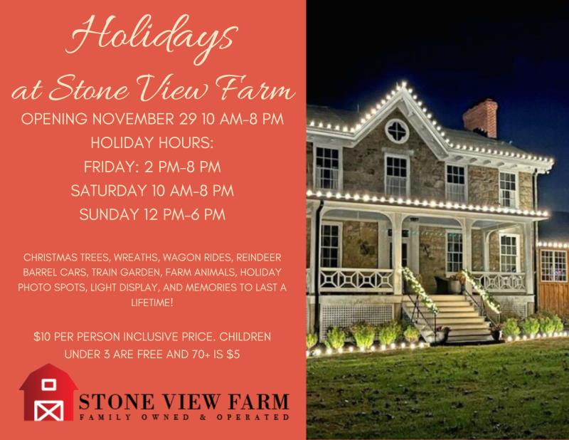 Join us from November 29 through December 20th for our Holiday Celebration. Hours of operation: